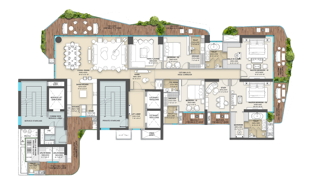 4BHK WITH LOUNGE + STUDY + 2 SQ