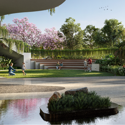 The design features lush vertical gardens on balconies, creating a sustainable and serene environment. Residents are offered with large, south-facing balconies that capture ample winter sun.